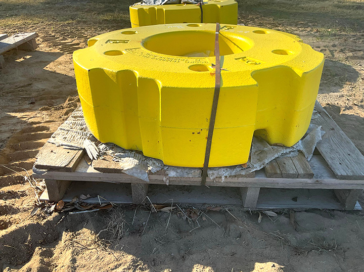 - Two (2) John Deere R341378 Wheel Weights, 900kg Each (1,985lbs), Fits JD 42in Wheels or Larger for 7R / 8R / 9R Tractors