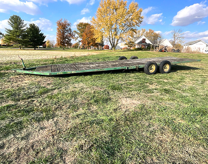 - John Deere Implement Trailer, 28x8ft., 7.0-15 tires, tandem axle, wooden deck