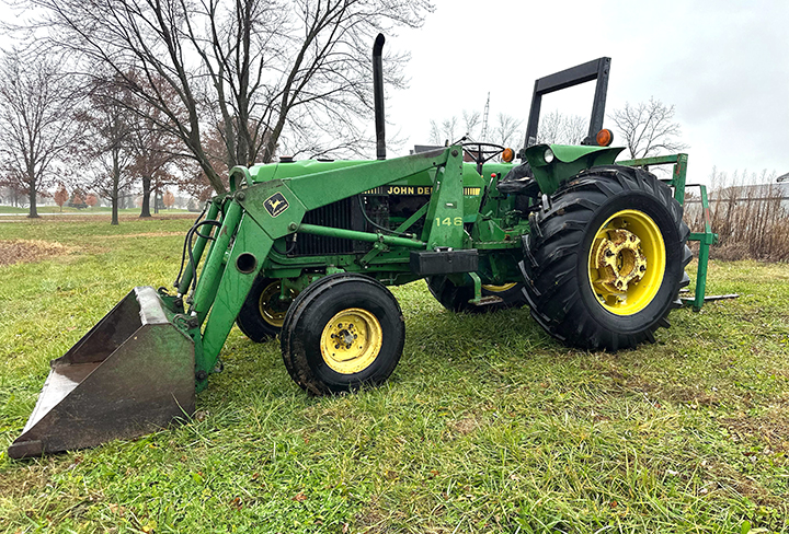 - John Deere 2755 2WD Tractor, with John Deere 146 loader, 72in. bucket, 2 hyd. outlets, 3pt., 540 PTO, quick hitch, 11L-15 front tires, 18.4-30 rear tires, rear wheel weights, showing 1,894 hours