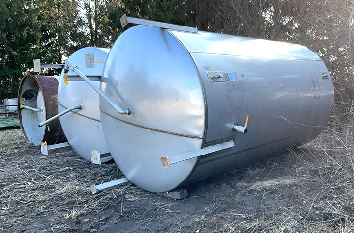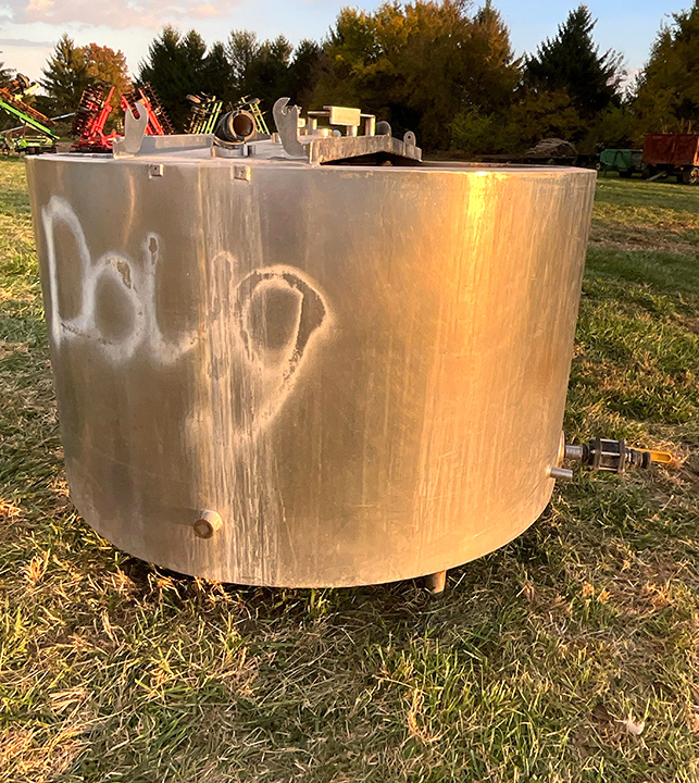 - Stainless Steel Tank, cone bottom, with legs, 71in. x143in.