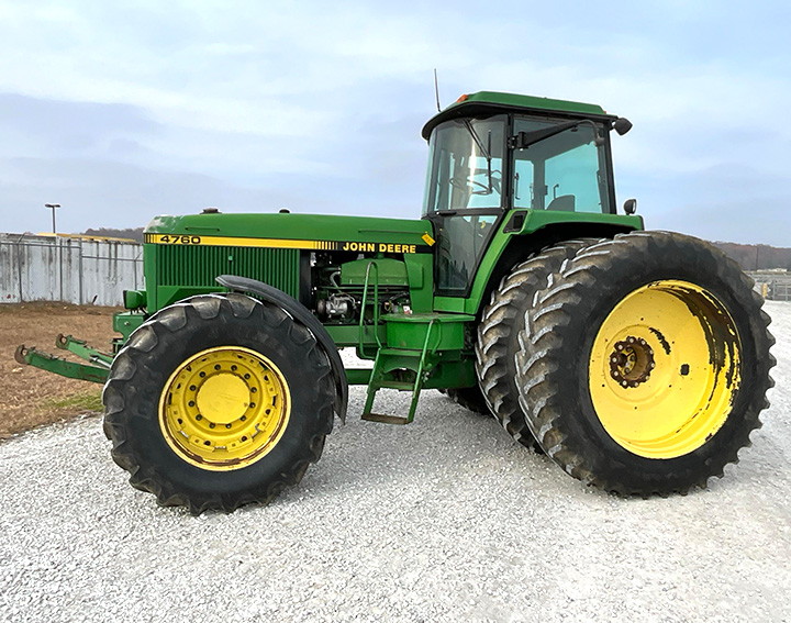 - John Deere 4760 Tractor, PS transmission, 1000PTO, 3 hyd. outlets, rear 3pt., front 3pt., LED lights, 480/70R30 front tires, front fenders, 480/80R46 rear duals, showing 9,391 hours, SN: RW4755P010057