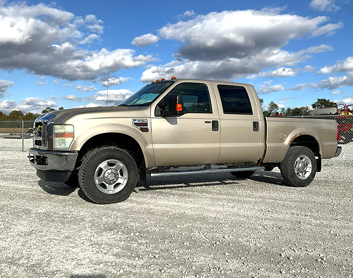 - 2010 Ford F-250 4×4 Super Duty Crew Cab Pickup XLT, 115,547 miles, powerstroke diesel engine, automatic transmission, cloth interior, goose neck ball, no tail gate, running boards, 275/70R18 tires, VIN: 1FTSW2BRXAEB41631