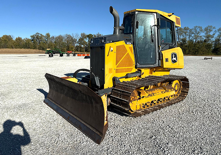- 2021 John Deere 450K LGP Dozer, Hours: 2647. CAB w/AC, Air Ride Seat, Keyless Start Pad, 24in Low Ground Pressure Pads, 115in 6-Way Blade, Joystick Controls. SN: 1T0450KXLMF403479