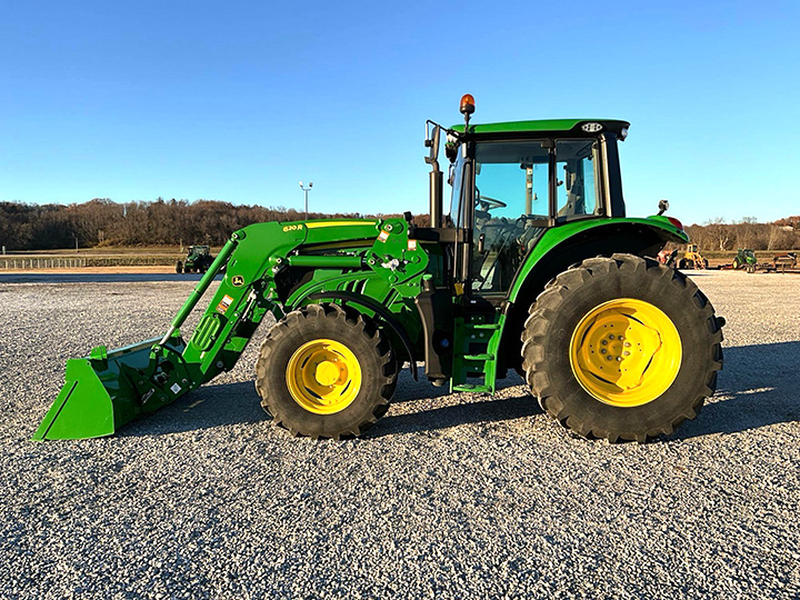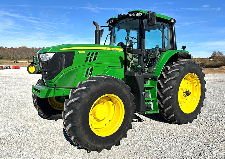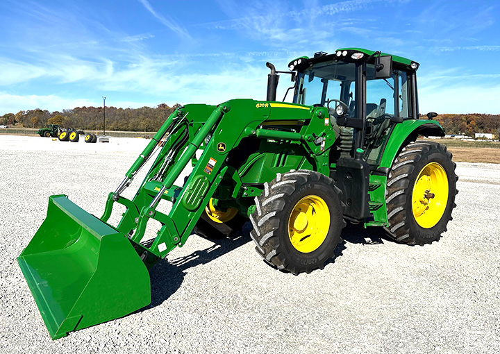 - 2023 John Deere 6130M Tractor, Hours: 587. CAB w/AC, MFWD, 24×24 PowerQuad Plus Transmission, Three Rear Remotes, Telescopic Lift Arms, 540/1000 Reversable PTO, Drawbar, Cold Start Package, Additonal Light Package, John Deere 620R Loader w/QA Bucket, Third Function Hydraulics on Loader, Grill Guard, 480/70R38 Rear Tires, 420/72R24 Front Tires. SN: 1L06130MAPG180484