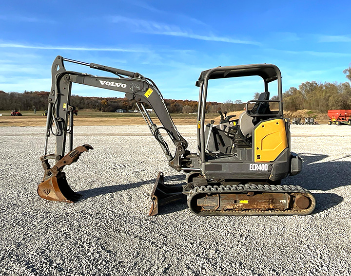 - 2017 Volvo ECR40D Excavator, Hours: 1,412. OROPS, Rear Counter Weight, 18in. Tooth Bucket, Hydraulic Thumb, 70in. Push Blade, 12in. Rubber Tracks. SN: VCECR40DT00014122