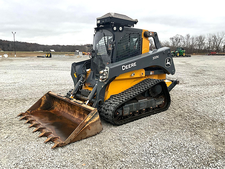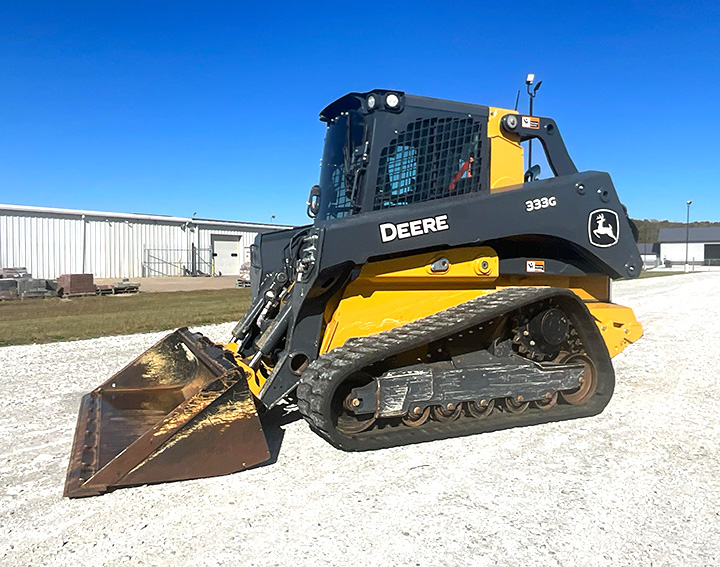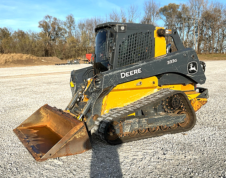 - 2023 John Deere 333G Track Loader, Hours: 786. Cab with Heat and A/C, Heated Air Suspension Seat, 2-Speed, High Flow Hydraulics, Radio, Backup Camera, Forestry Package, Cold Start Package, Ride Control, Power Quicktach Bucket, 84in. General Purpose Bucket, 1 Rear Weight Each Side, Heavy Duty Rear Bumper, 18in. Tracks. SN: 1T0333GMJPF444758