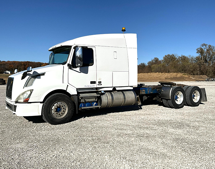 - 2014 Volvo VNL84T Semi, Cummins ISX15 engine, 18 speed Eaton Fuller Transmission, power windows, power locks, power divider, cross lock in axles, cruise control, engine brake, 296in. wheel base, air slide 5th wheel, 60in. sleeper, sleeper climate control, quater fenders, pintle hitch, dual 125 gallon stainless steel fuel tanks, 385/65R22.5 tires Miles: 664,450, VIN: 4V4N99TK7EN155169
