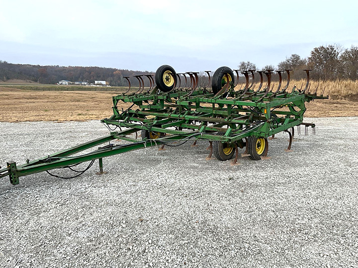 - John Deere 1010 28ft. Field Cultivator, Hydraulic Fold Wing, Rear Tine Harrow, 7.60-15 Tires, SN: 009197