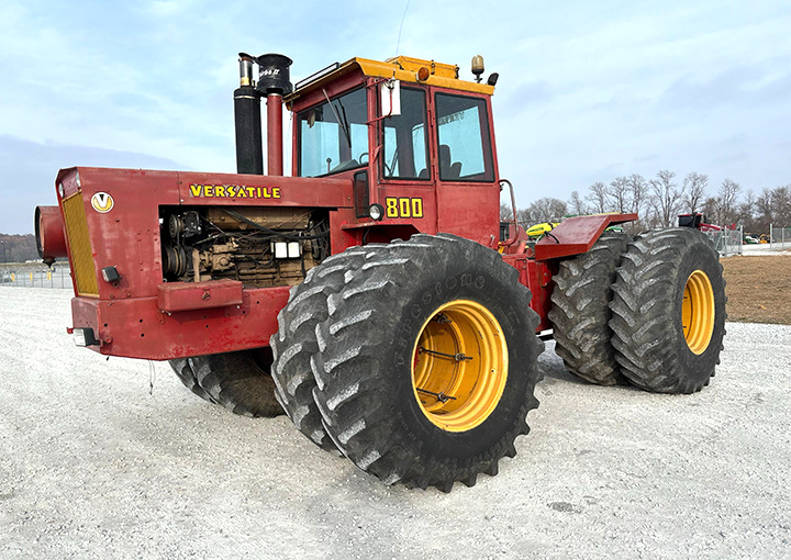 - Versatile 800 4WD Tractor, Hours Showing: 3,130, Bareback, 3 hydraulic outlets, drawbar, hydraulic lift arms, Fromt Duals: 460/85R38, Rear Duals: 480/80R38, 18.4-38. SN: 0500682