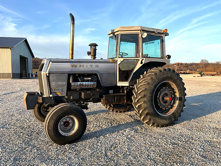 - White 2-180 Tractor, shows 314 hours, 3pt, big 1000 PTO, 3 hydraulic remotes, 520/85R38 rear tires, 14L16 front tires, 5 front weights, SN: 284885-417