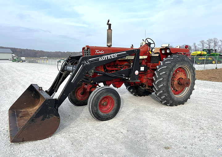 - Farmall Turbo 856 Tractor with Loader, Hours Showing: 1459. Koyker 5K Loader, 2WD, Rear Wheel Weights, Hubs, 540/1000 PTO, 2 Hydraulic Outlets, Lift Arms, Rear Tires: 18.4-38, Front Tires: 10.00-16. SN: 16368.