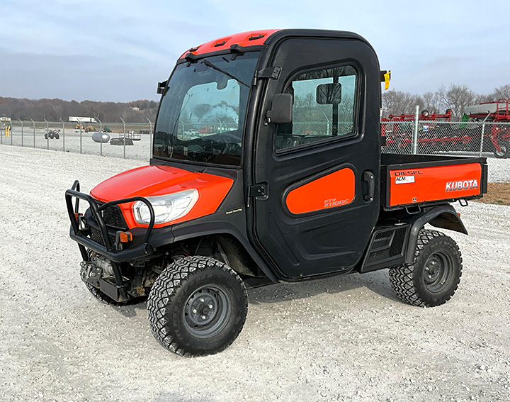- 2019 Kubota RTV X1100C 4X4 utility vehicle, 493 hrs., enclosed cab with heat and AC, diesel engine, VHT-X Variable Hydro Transmission, power steering, hyd. dump bed, 25X10.00-12 NHS tires, 4000# 12v winch, 2983 mi., SN 50631 – one owner