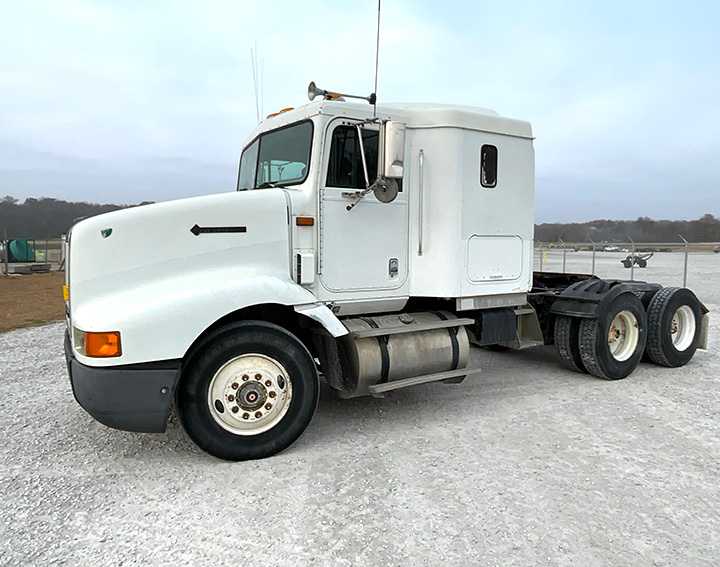 - 1996 Volvo Day Cab Semi Tractor, 329,373 miles, air ride seat, air ride chaise with cheater axle, aluminum headache rack w/ toolbox, wet kit, 238in. Wheel base, 11R24.5 rear tires, 285/75R24.5 cheater axle tires, 11R24.5 steer tires, VIN: 4B4SDBCJ3TR517O49