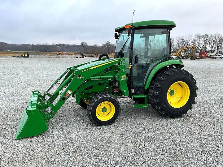 - 2024 John Deere 4044R MFWD Compact Tractor Loader, Hours: 13. CAB w/AC, E-Hydro Transmissino, John Deere 440R Loader w/QA Bucket, 540rpm PTO, Grill Guard, Radio, 440/80-24 Rear Tires, 260/70-16.5 Front Tires. SN: 1LV4044RPRR403817