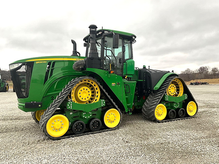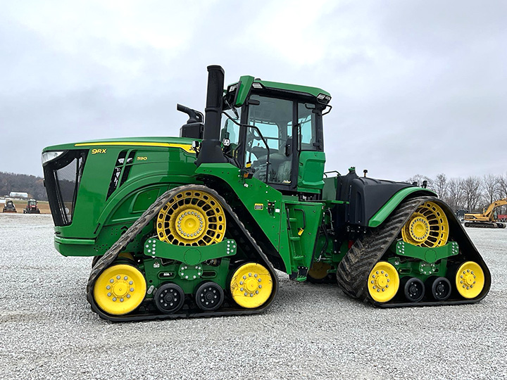 - 2023 John Deere 9RX 590 Track Tractor, Hours: 618. Signature Edition, E18 Transmission, Six Rear Remotes, PTO, Greaseable Center Pins, Ultimate Comfort and Visibility Package, Deluxe Seat, CAB Suspension, Poly Mid-Rollers, 36in Tracks. SN: 1RW9590DCPJ823184
