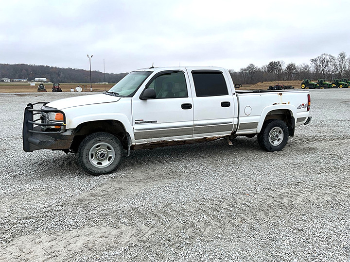 - 2003 GMC Sierra 2500HD 4WD Crew Cab Pick Up SLT, Miles: 336,204. Duramax Diesel Engine, Automatic Transmission, Heat & A/C, Leather Seats, 80in. Bed, Goose Neck Ball, Brush Guard, 245/75R16 tires, VIN: 1GTHK23103F102526