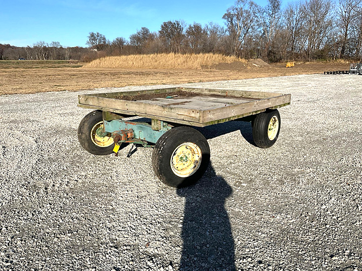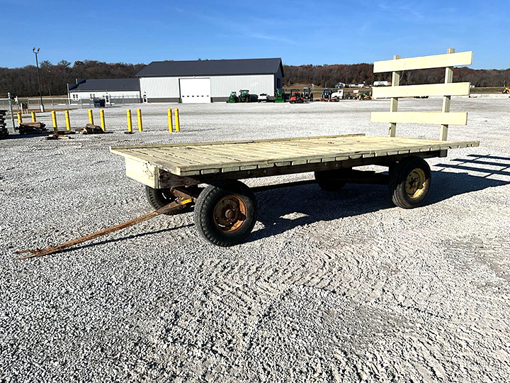 - Shop-built 14ft tandem axle flatbed farm trailer, no title