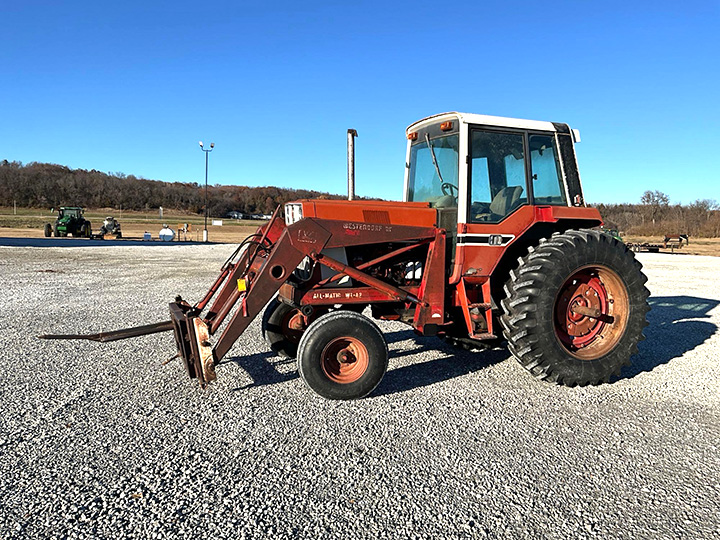 - International 1086 Tractor w/ westendorff WL42 Loader & Bale Spear, 4,897 hours, 3pt, 540/1000 PTO, 2 hydraulic remotes, 480/80R38 rear tires, 1000-16 front tires, SN: 2610181U38326