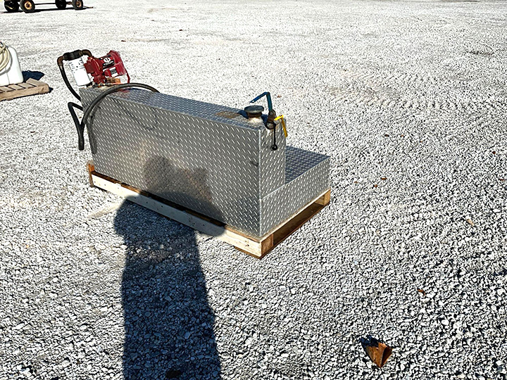 - Tractor Supply Company Aluminum “L” Shaped Fuel Tank with Fill-Rite 15GPM 12 Volt DC Pump, Mounted on Pallet