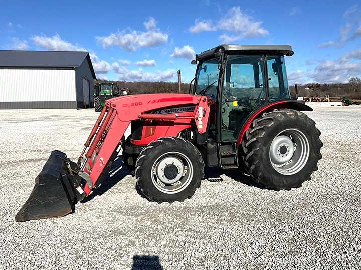 - Massey Furgeson 3635 MFWD Tractor with Massey DL260 Loader, Showing 368 Hours, 72 in. Bucket, Cab with Heat & A/C, 3 Point, 540 PTO, 2 Hydraulic Remotes, Grille Guard, 16.9R30 Rear Tires, 280/85R24 Front Tires, SN: CSO7O26
