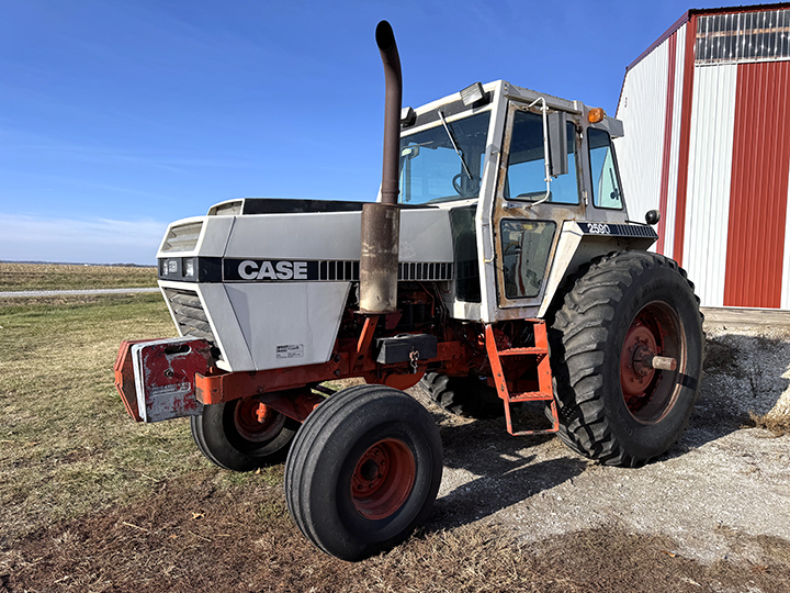 - 1979 Case 2590 2wd tractor, 5359 hrs., partial power shift transmission, 4 hyd. outlets, 3pt., 1000 PTO, 14L-16.1 4-rib front tires, 20.8R-38 rear tires and clamp-on duals, 6 suitcase weights, SN 8847331 – one owner
