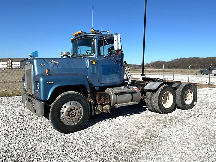 - 1984 Mack RS686LST Day Cab Semi Tractor, Miles Showing: 850,384, Mack Diesel Engine, Eaton Fuller Road Ranger Transmission, Tandem Axle, 190in. Wheel Base, Holland 5th Wheel, Aluminum Front Wheels, 11R22.5 Tires, VIN: 1M2T153Y0EM001914, Location: Fort Madison, Iowa