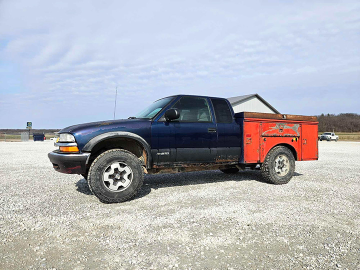 - 2002 Chevy S10 Service Truck, Miles Showing: 204,051. 4.3L V6 Engine, 4×4, Power Windows, Power Locks, 6.5ft Knapheide Service Bed, VIN: 1GCCT19W528183630, Location: Fort Madison, Iowa