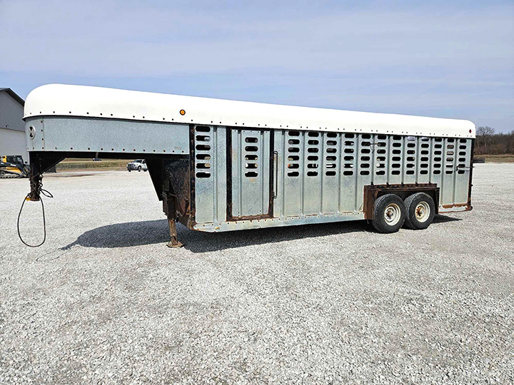 - 1988 Kiefer Built 7ft. x 22ft. Livestock Trailer, Gooseneck, Center Divide Gate, Tandem Axle, 8 Lug Wheels, VIN: 1DVEG2225JK013424 Location: Fort Madison, Iowa