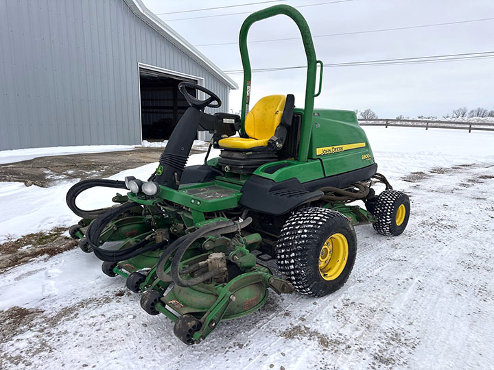 - John Deere 8800A TerrainCut mower, Yantra diesel engine, ROPS, 7ft. Cutting Width, 5 deck, 26×12.00B12 front tires, 20×10.00.8 rear tires, 2,655 hours, SN: 1TC880AVAE010035, Location: Franklin, Indiana