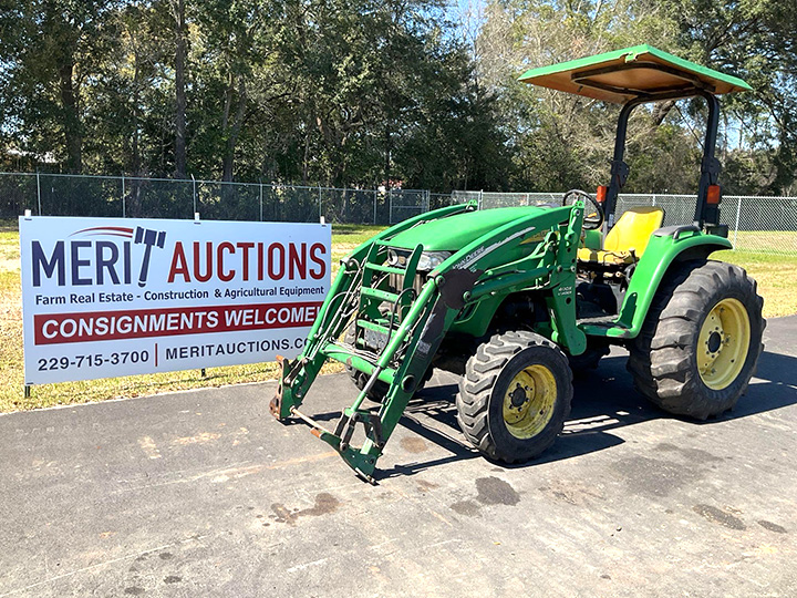 - 2004 John Deere 4520 Tractor, Hours: 1,173. OROPS, PowerReverser Transmission, Rear Aux Hydraulic Remote, Canopy Top, Industrial Tires, John Deere 400X Loader. SN: LV4520P152275, Location: Bainbridge, Georgia