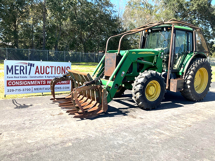- 2006 John Deere 7420 Tractor. CAB w/AC, MFWD, 16×16 PowerQuad Plus Transmission w/Left Hand Reverser, Triple Rear Remotes, 96in R&P Axle, Air Ride Seat, Corner Post Exhaust, Forestry Cage, 18.4-38 Rear Tires, 380/85R28 Front Tires. SN: RW7420R039980, Location: Bainbridge, Georgia