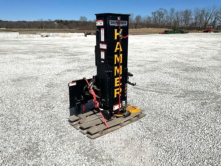 - Danuser Hammer SM40 post driver, skid loader hookup, tilt, post grapple, 300# weight, strike plate for smaller posts, SN 8791, Location: Ft. Madison, IA