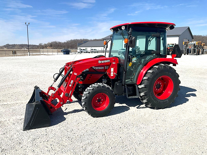 - 2023 Branson 5520C MFWD Tractor, Hours: 94, CAB with A/C, 4 Cylinder Diesel Engine, 16 Speed Shuttle Shift, Quick Attach Loader, Radio, Light Kit, (2) Hydraulic Outlets, 72in. Bucket, 16.9-24 Rear Tires, 12-16.5 Front Tires, SN: FAGA00138, Location: Fort Madison, Iowa