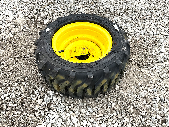 - New 215/50-10 or 18X8.5-10 NHS tires in 5-lug John Deere compact tractor rim