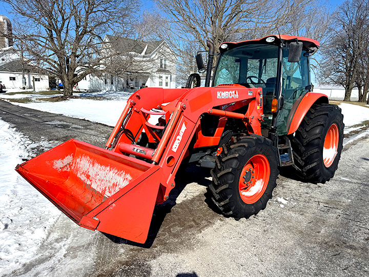 - 2019 Kubota M5-111D MFWD Hydraulic Shuttle tractor, hours: 2830, 12sp. transmission, LH reverser, 3 hyd. outlets, 540 & 1000 PTO, 320/85R24 front tires, 460/85R30 rear tires, sells complete with Kubota LA1854 loader, 6ft. material bucket, SN KBUM4EDCJK8F60864