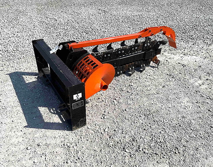 - GIYI GY-D39F skid steer trencher, hydraulic drive, 8in. width, 39in. depth, skid loader hookup, SN GY-FDKGJ392505344