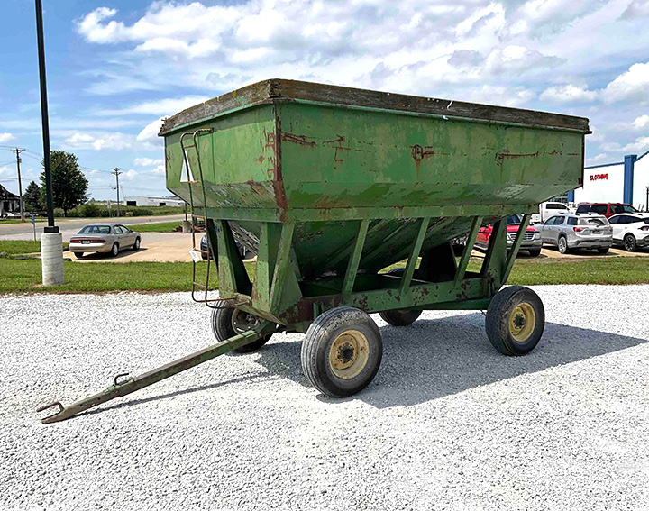 - 200 bu. Gravity Wagon on John Deere Gear, Right Side Unload, 11L-15 Tires, Front and Rear Ladder