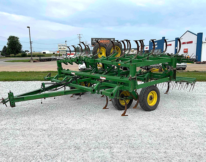 - John Deere 1010 24ft. flat-fold field cultivator, 8in. sweeps, 3-bar coil-tine harrow, main frame walking tandems, 7.60-15 tires, 5.90-15 wing tires