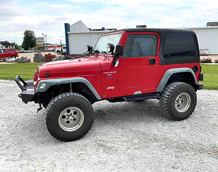 - 1997 Jeep Wrangler 4X4 2dr. SUV, 4.0L I-6 gas engine, 5sp. trans., AM/FM/CD, AC, removable hard top, roll bar, receiver hitch, 33X12.50R15LT tires, 154,694 mi., VIN 1J4FY19S2VP484047