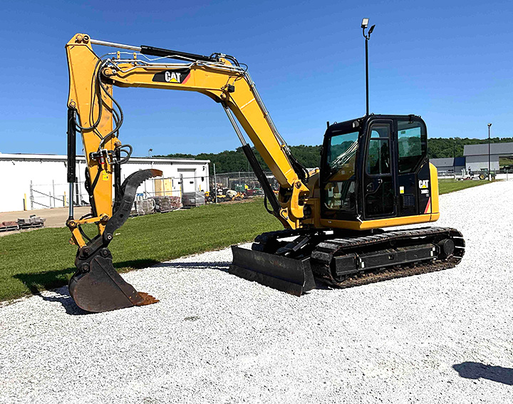 - 2019 CAT 308E2CR Excavator, Hours: 655. CAB w/AC, Dual Aux Hydraulics Circuits, 18in. Rubber Crawler Pads, Push Blade, 22in. Tooth Bucket, Hydraulic Thumb, SN: CAT030EJFJX10740