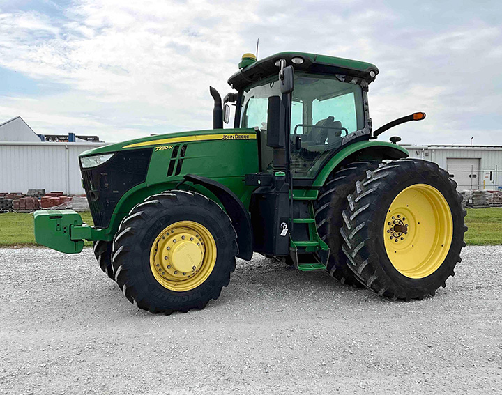 - 2014 John Deere 7230R MFWD Tractor, Hours: 3,715, 20×20 CommandQuad Plus Transmission, Premium CAB w/Active Seat, Quick Hitch, Four Remotes, Starfire 3000 Receiver, 540/1000 PTO, Front Fenders, Quick Hith, 250lb. Rear Wheel Weight per Side, 20 Front Weights, Michelin 480/80R46 Rear Duals, New 420/90R30 Front Tires, SN: 1RW7230RJEC081071