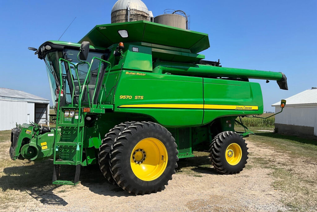 - 2010 John Deere 9570 2WD combine, Bullet Rotor, Contour-Master feederhouse, sidehill performance package, chopper & spreader, hopper ext. rear hitch, 21.5ft. unload auger, Premier cab, 480/ 80R38 front tires & duals, 18.4-26 rear tires, 1,912 eng./ 1,182 sep. hours, Gold Key, SN 1H09570SE90735150
