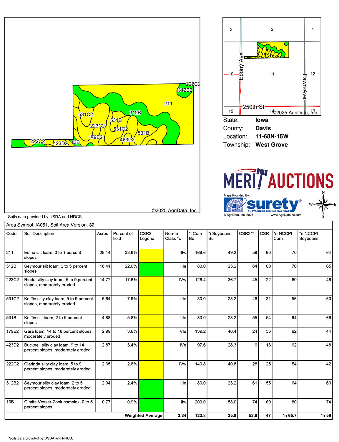 Make plans now to participate in this upcoming Davis County, Iowa Land Auction! One mile south of West Grove, Iowa. This farm offers productive tillable farmland with improvements including tile and terraces. This farm sells with full farming rights for the 2026 season. We look forward to your participation in this upcoming Davis County, IA Land Auction!