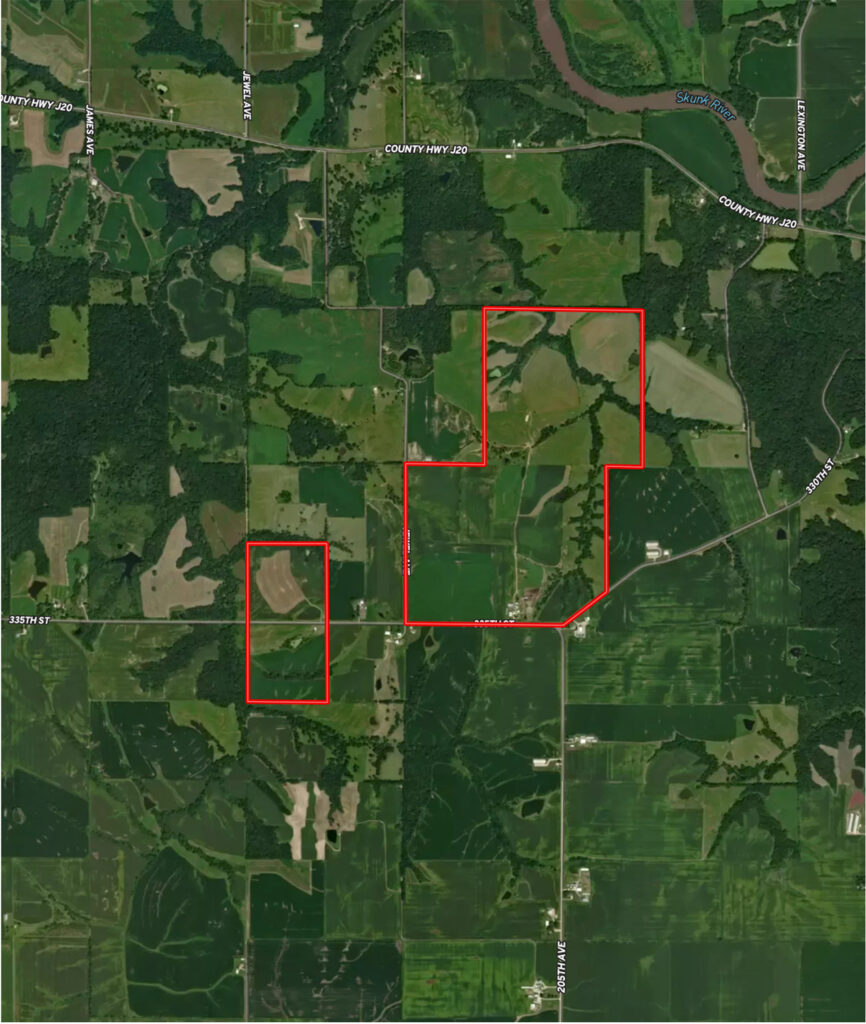 The Walljasper Farm is located in Sections 26, 34 & 35, Jackson Township, Henry County, IA approximately 13 miles south of Mt. Pleasant, IA or 10 miles northwest of West Point, IA. From Mt. Pleasant, IA go south 8 miles on U.S. Hwy. 218 to 335th St., turn left or east and proceed 2 miles to the farm.